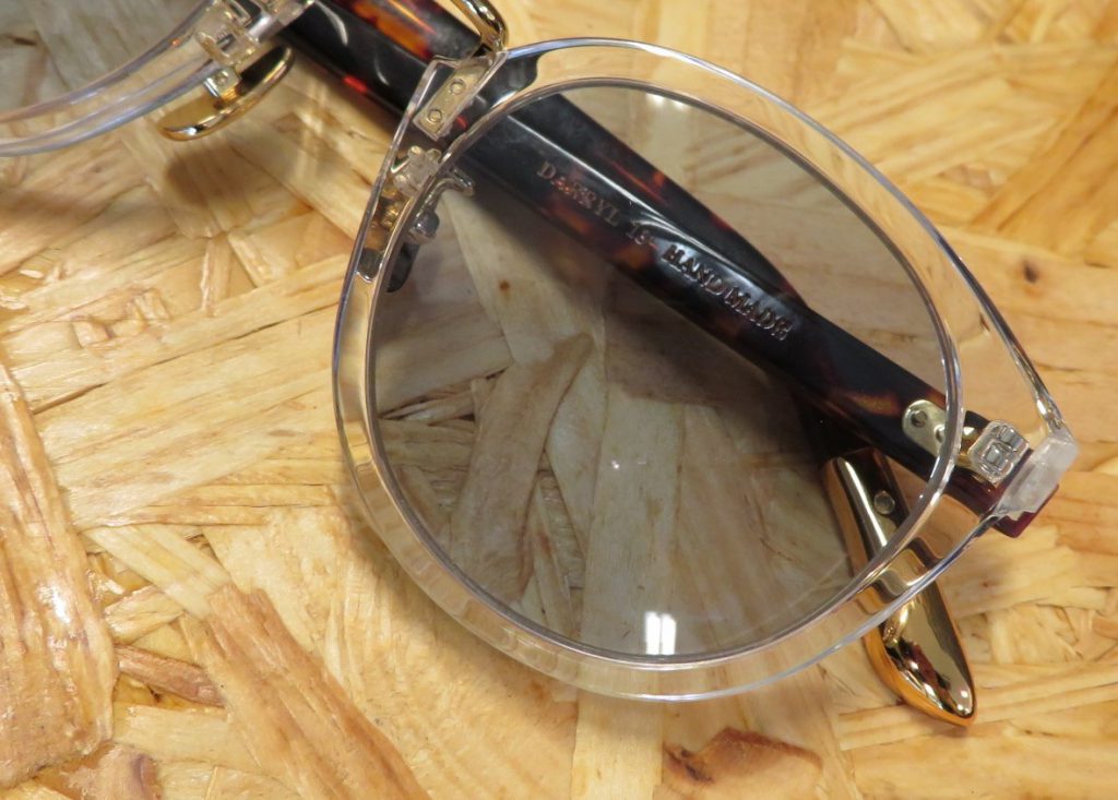 カラーレンズ、アセテート生地が持つ色の統一感を追求。