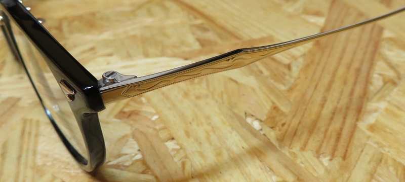 ブリッジとテンプルに施された唐草模様がクラシックな印象の、本来女性向けのモデルですが
