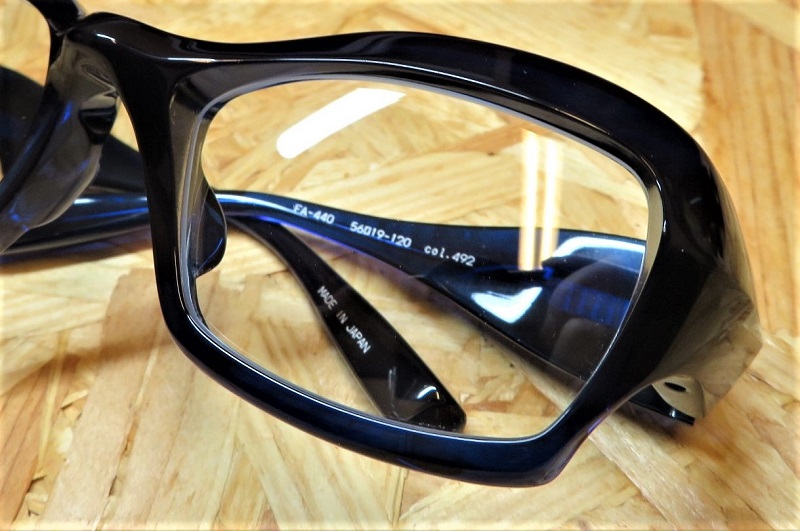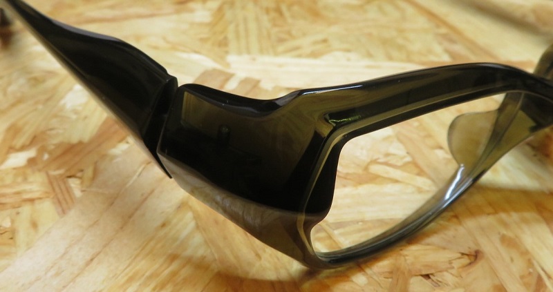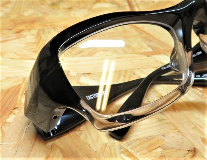 重厚感のあるゴーグル形状と、智元から繋がる三角形のテンプルが力強さを感じさせます。オリジナルスプリングヒンジ搭載なので、極太テンプルでも優しい掛け心地を実現。飛沫感染予防の観点から、時世を考慮し“FACTORY900”らしい立体的な造形と、ダイナミックな曲線を併せ持ったゴーグル形状のメガネに仕上がりました。