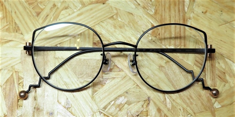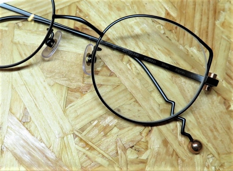 ポストモダンなユニークな形でありながら細身なのでシンプルで掛けやすいチタンフレームのNORAH。