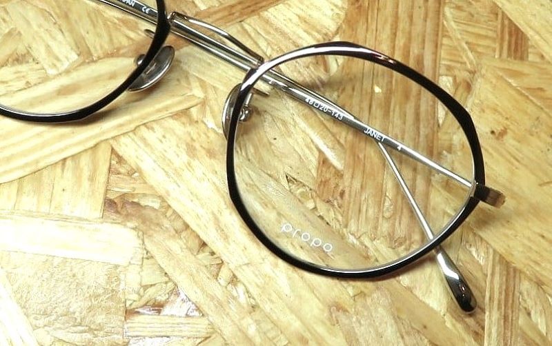エッジの効いた多角形のオールメタルフレーム。propoらしいエッジに、レンズサイズも大きく、小顔効果も期待できます。