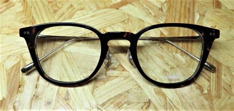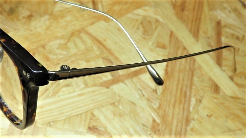 顔馴染みの良い明るめのデミ柄の生地に、シートメタルを挟み込んだ技巧的な構造のコンビネーションフレームのGERRY。極細のテンプルが、柔らかな掛け心地に寄与。